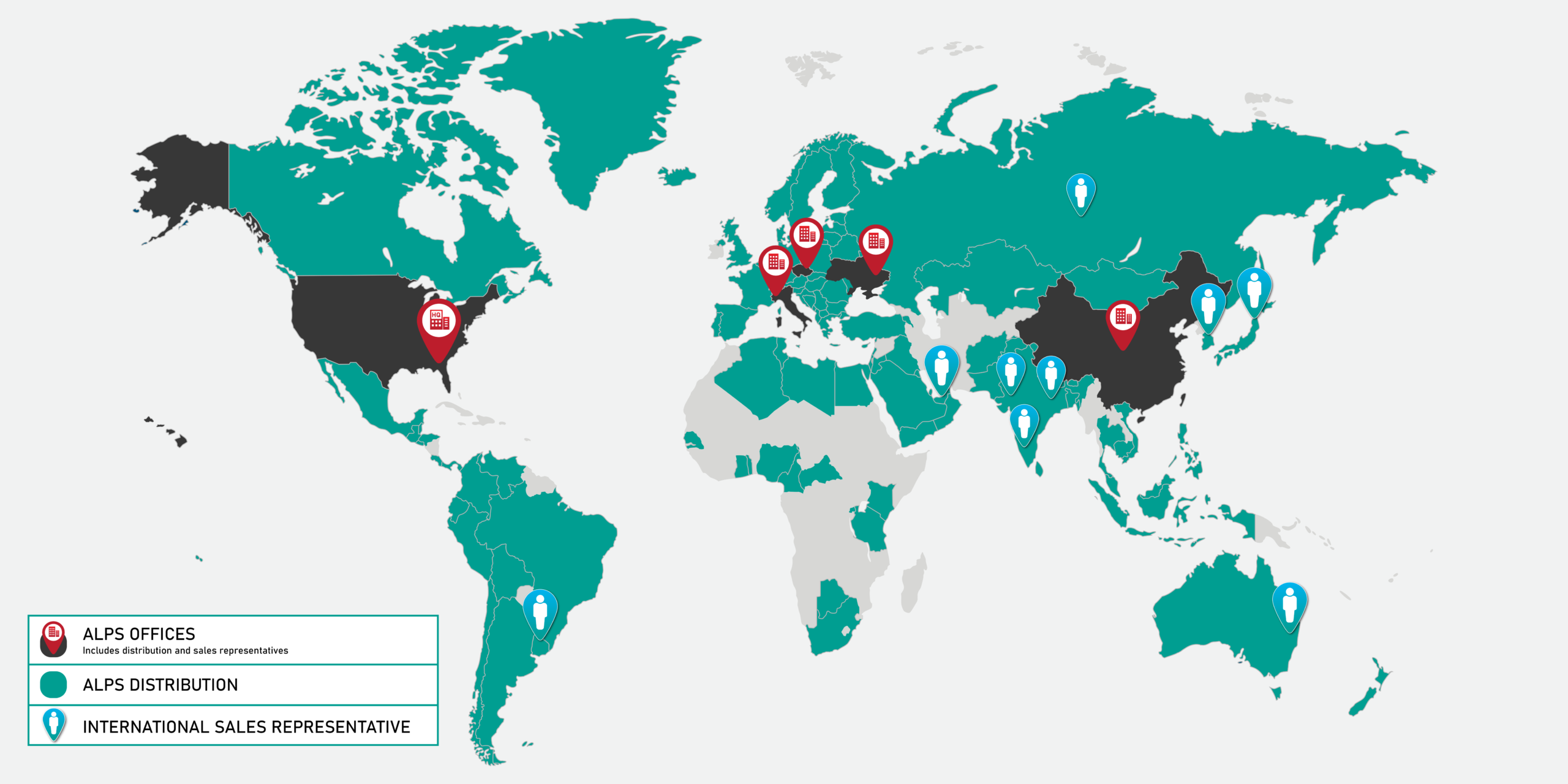 ALPS has warehouses and sales offices in 4 time zones to provide timely customer service, delivery, training, and technical and commercial support.