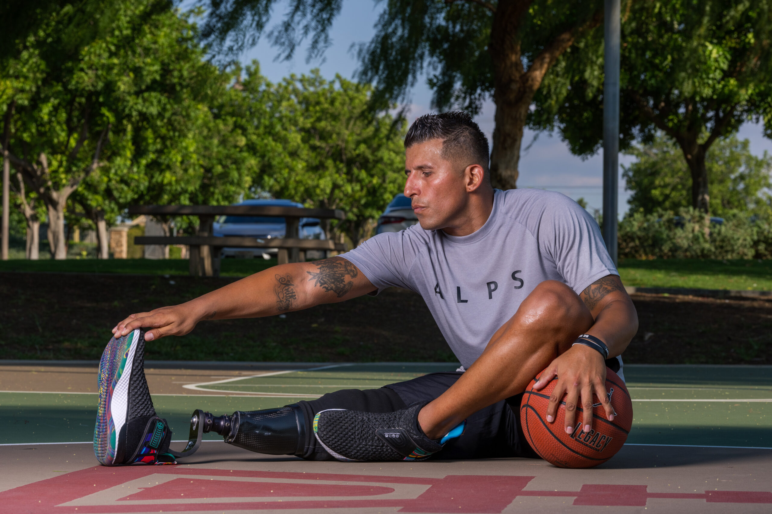 Steven Mosqueda, born and raised in Riverside, California, has a deep love for basketball. Even after losing his leg due to a car accident at the age of 22, he didn't give up on his passion for the game. Despite facing this traumatic experience, Steven is still grateful for his ability to move, be independent, and push himself to achieve his goals. Today, Steven is one of the core members of a non-profit basketball team called Amp1 Basketball, which includes four other individuals living with limb loss. The team is devoted to inspiring, educating, and motivating anyone they encounter.
